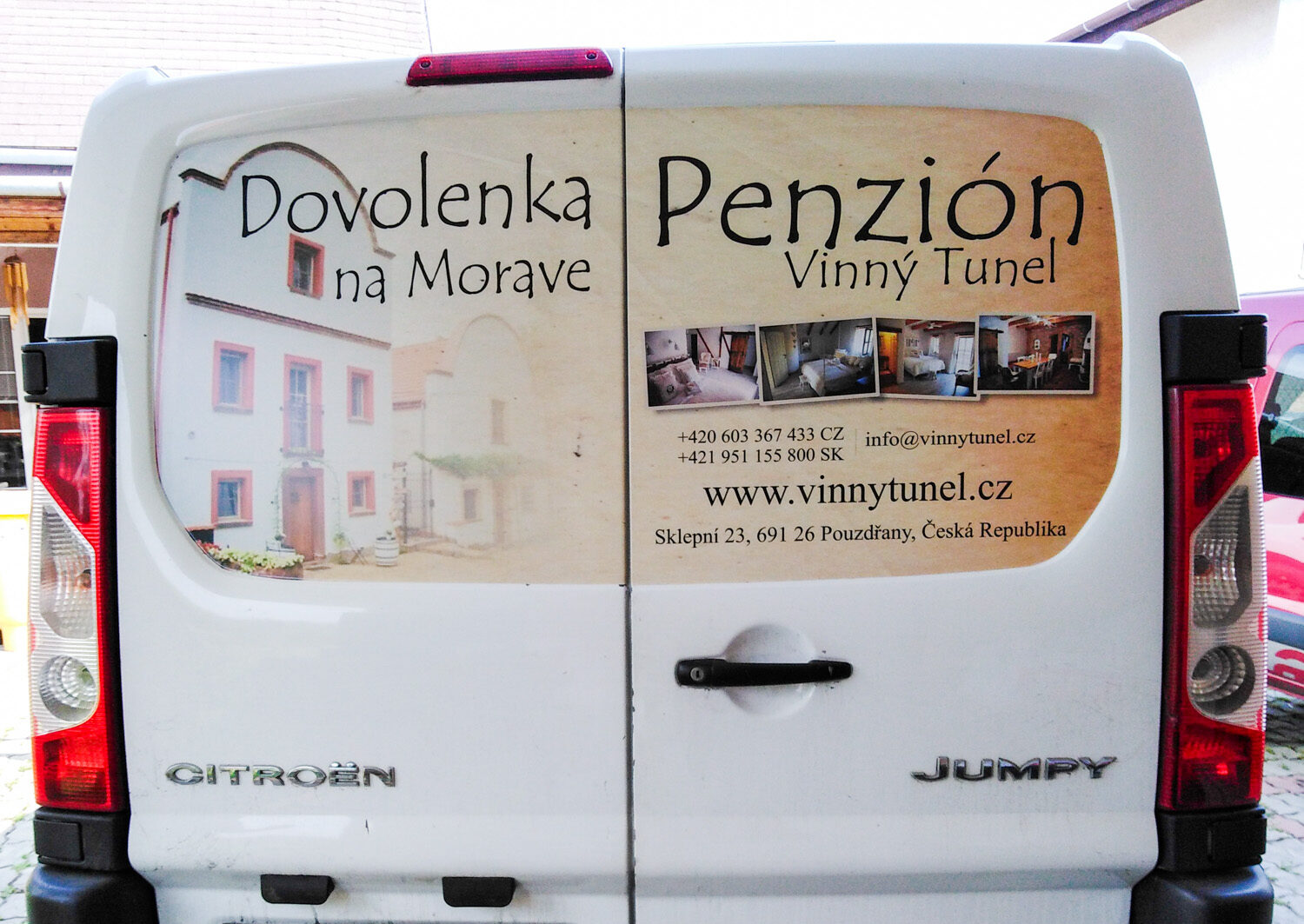 Polepy áut, samolepky, výklady a reklamné tabule.
